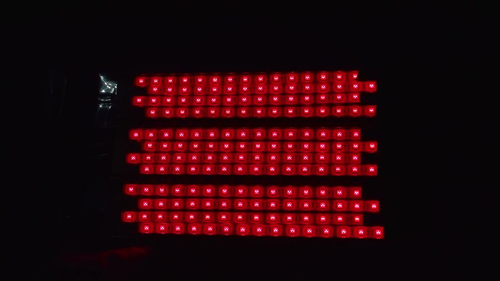 全部改用波長660nm的紅光,其他顏色波長光不需要了,因為只要專注生長低等藻類,低等藻類吸收有害物質較快,生長也快。一口氣增加到十二排,當然還是很省電。